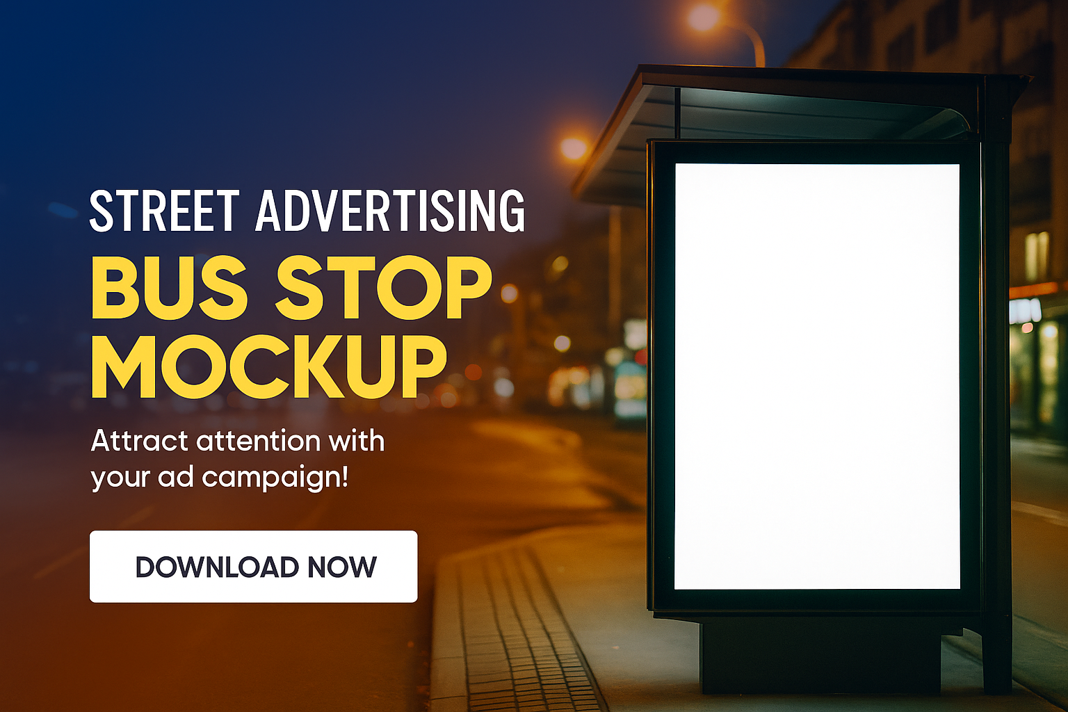 Nighttime Billboard Bus Stop Mockup for Street Advertising