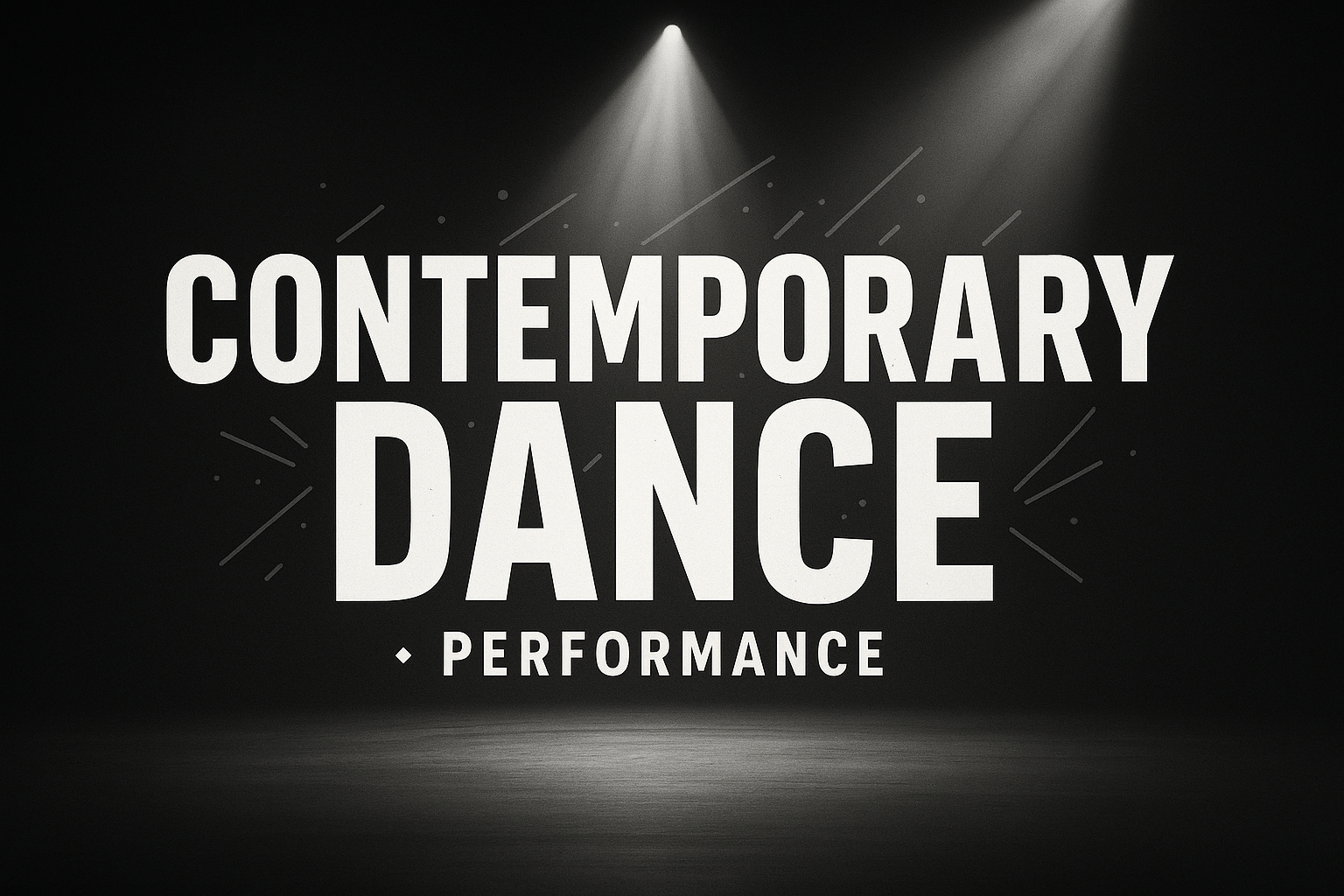 Bold promotional graphic showcasing a contemporary dance performance theme with dramatic lighting effects, suitable for event announcements and marketing.