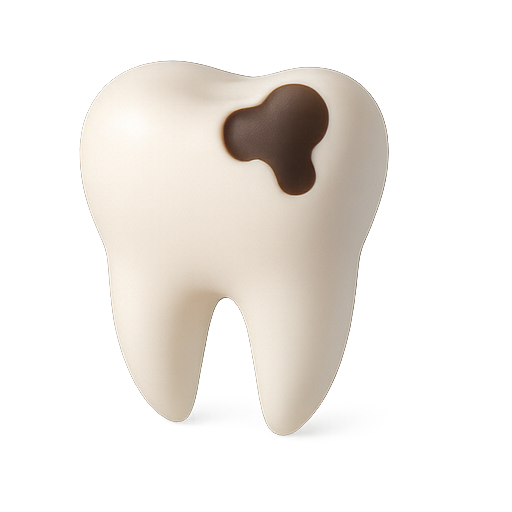 A stylized 3D model of a tooth with a cavity, highlighting dental health issues. This graphic can be used for educational purposes or dental health promotions.