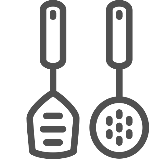 outline simple icon: cooking, cooking utensils, kitchen tools, slotted spoon, spatula