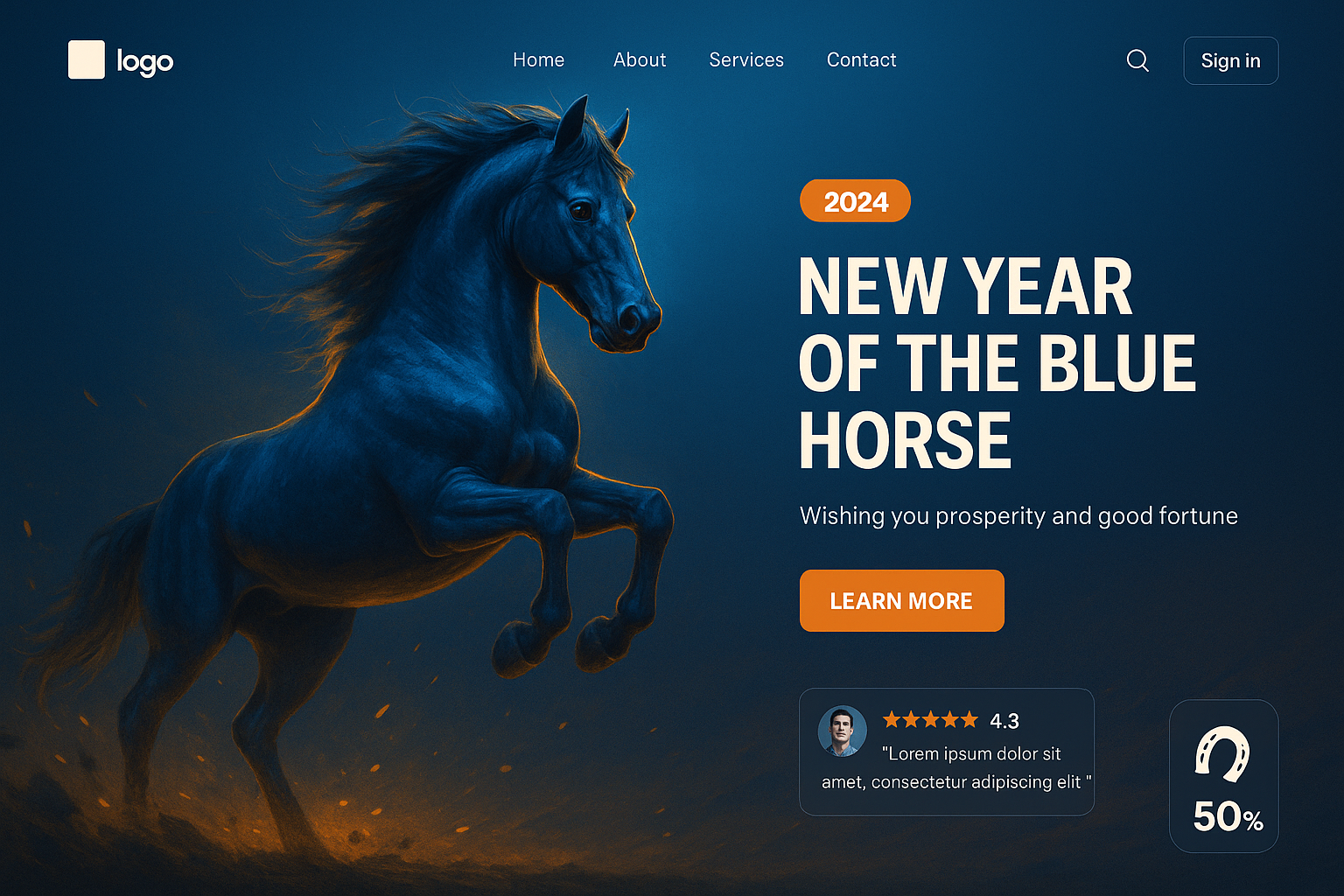 New Year of the Blue Horse Landing Page Design
