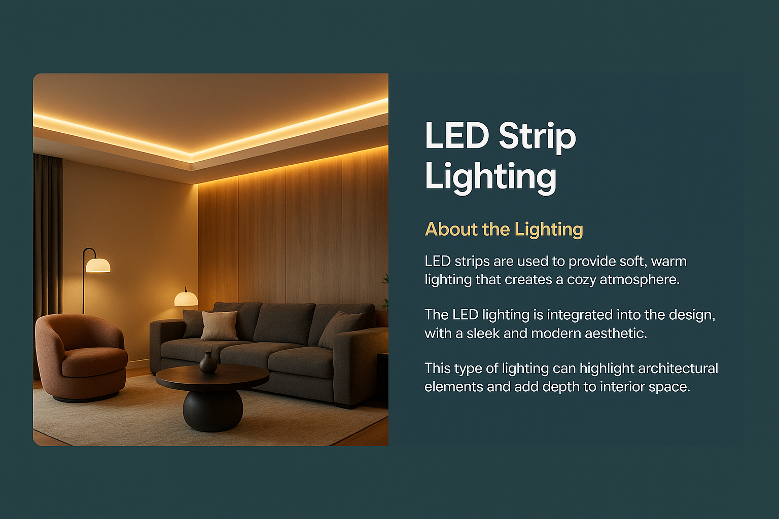 Stylish interior image featuring LED strip lighting that creates a cozy atmosphere. Perfect for showcasing modern home decor and lighting design concepts.