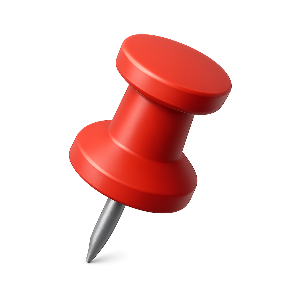 A visually striking 3D icon of a red pushpin, depicted in a three-quarter view with a glossy finish. The background is transparent, enhancing the icon's volumetric feel.