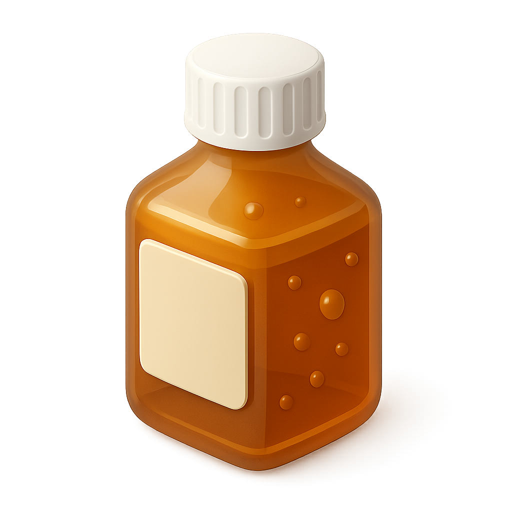 A stylized 3D icon of a resin bottle viewed from a three-quarter angle. The bottle is orange with a white cap and features a blank label and small bubbles, creating a volumetric effect.