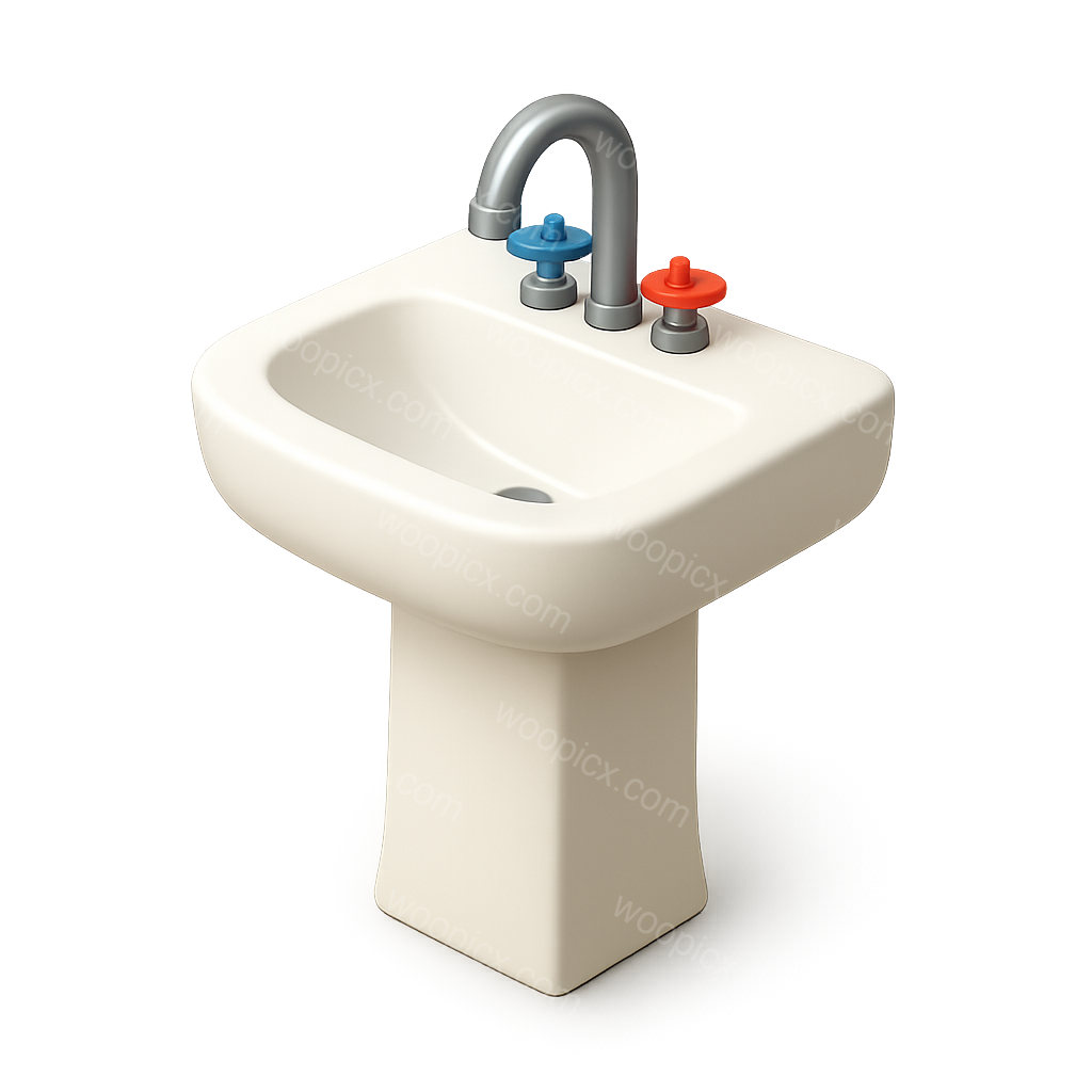Stylish 3D Bathroom Sink Icon with Volumetric Design