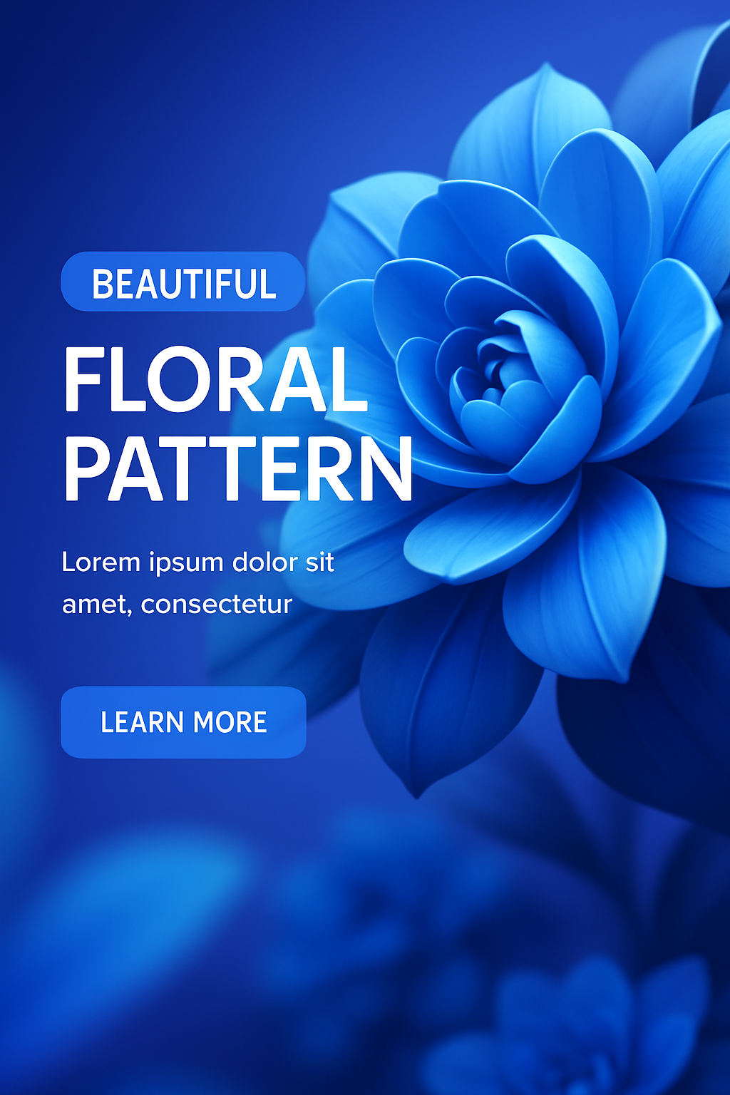This digital graphic features a stunning floral pattern in shades of blue, ideal for use in marketing, social media, or decorative purposes.
