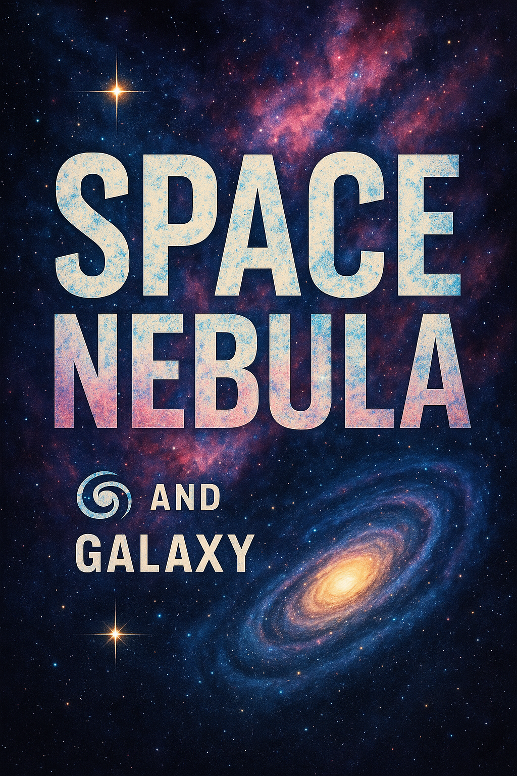 Cosmic Themed Graphic Featuring Space Nebula and Galaxy
