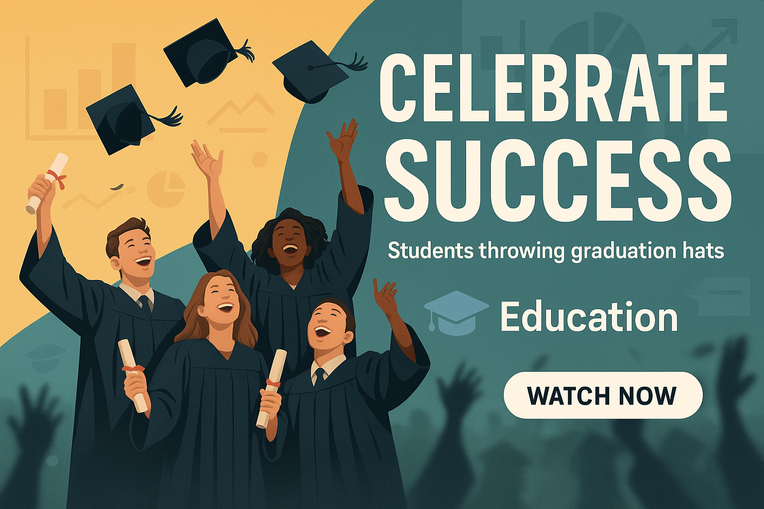 Graduation Celebration Graphic with Students and Caps
