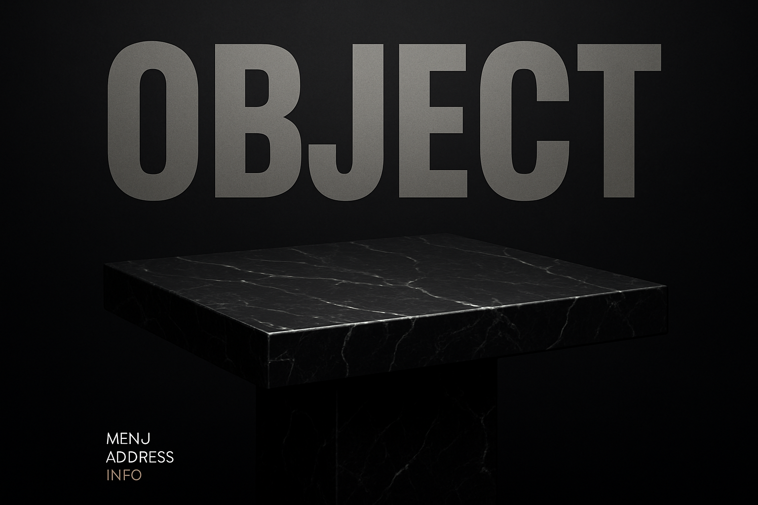 /Collection: /by davooda/Type: PNG/A high-quality image featuring a sleek black marble countertop set against a dark gradient background. The composition is minimalistic with bold typography, emphasizing the modern aesthetic.