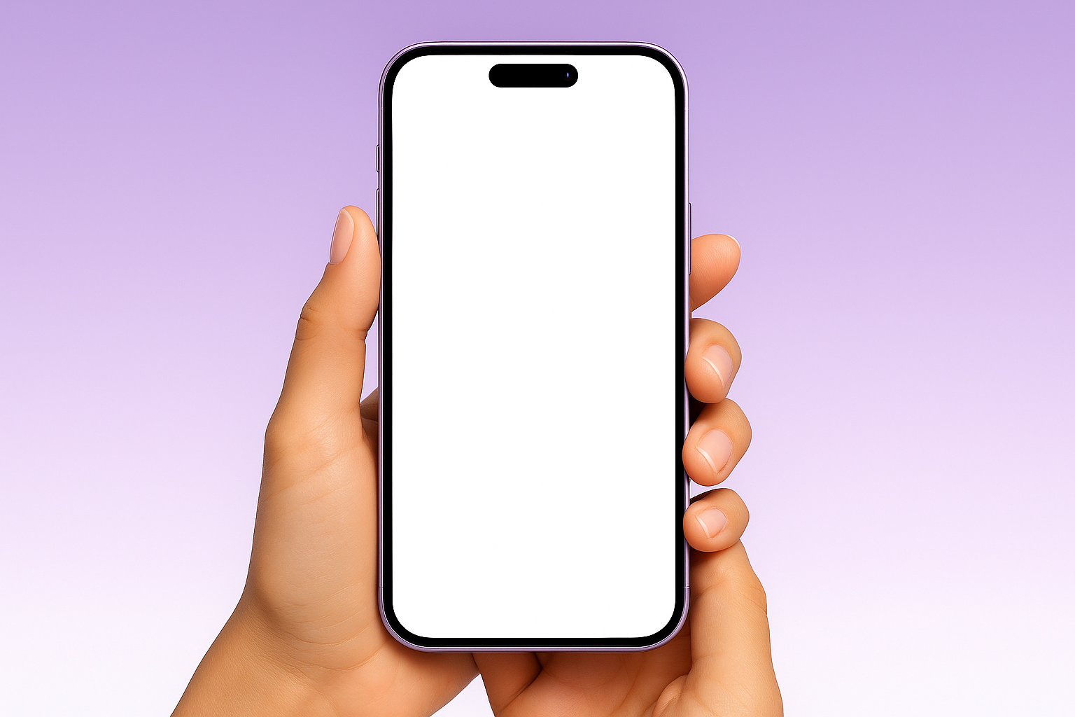 Vibrant Purple Phone Floating Above Hand in Bold Design