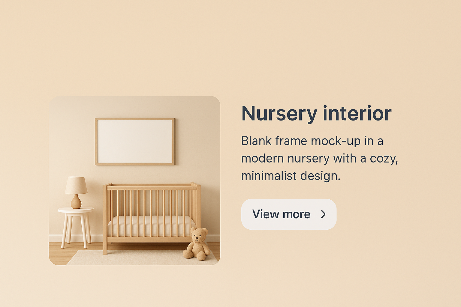 /Collection: /by davooda/Type: PNG/A cozy, modern nursery scene featuring a decorative frame mock-up. The design includes a crib, lamp, and teddy bear against a soft gradient background, creating a minimalist aesthetic.