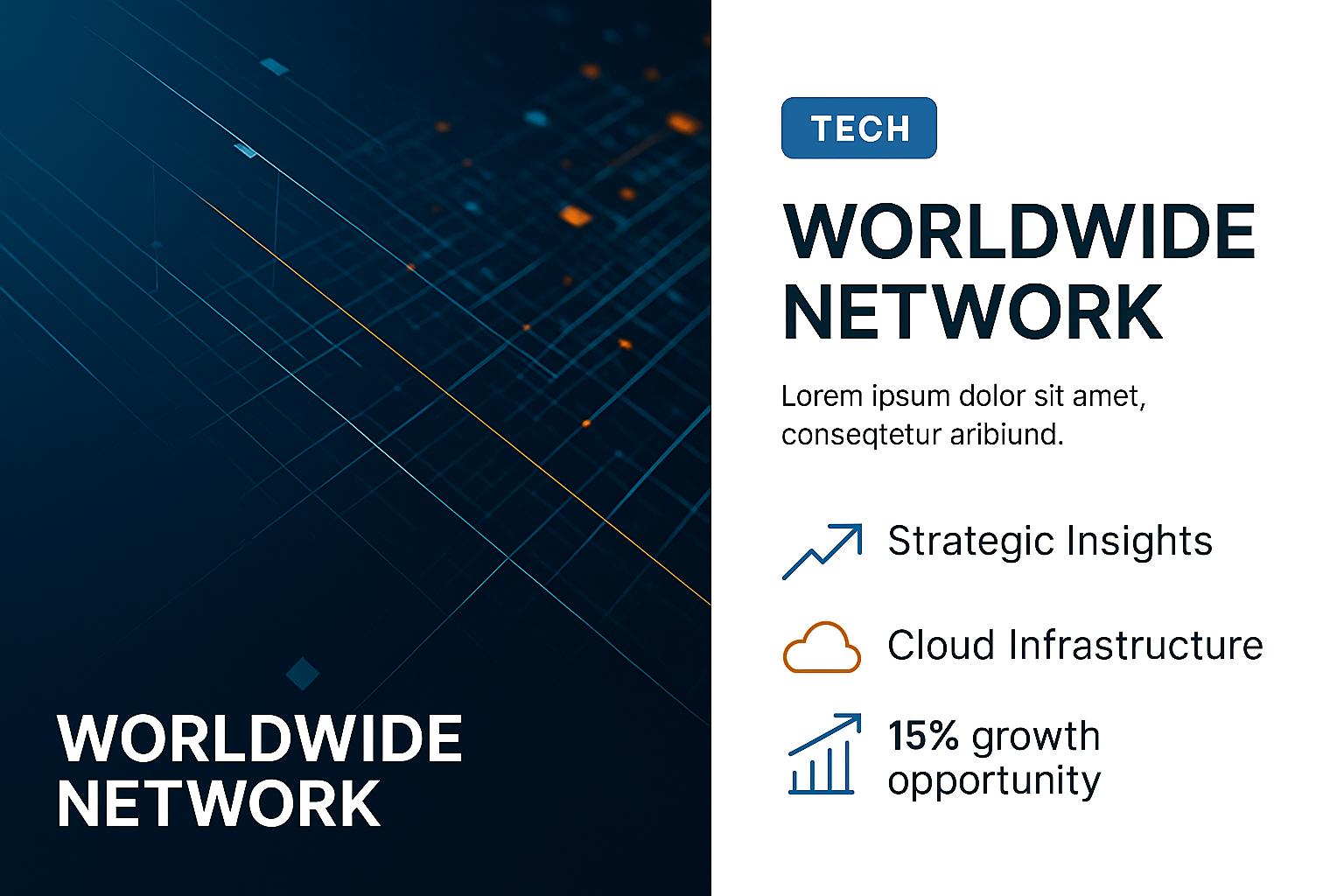 /Collection: /by davooda/Type: PNG/A sleek infographic showcasing strategic insights about a worldwide network, featuring modern design elements and a professional layout ideal for tech presentations.