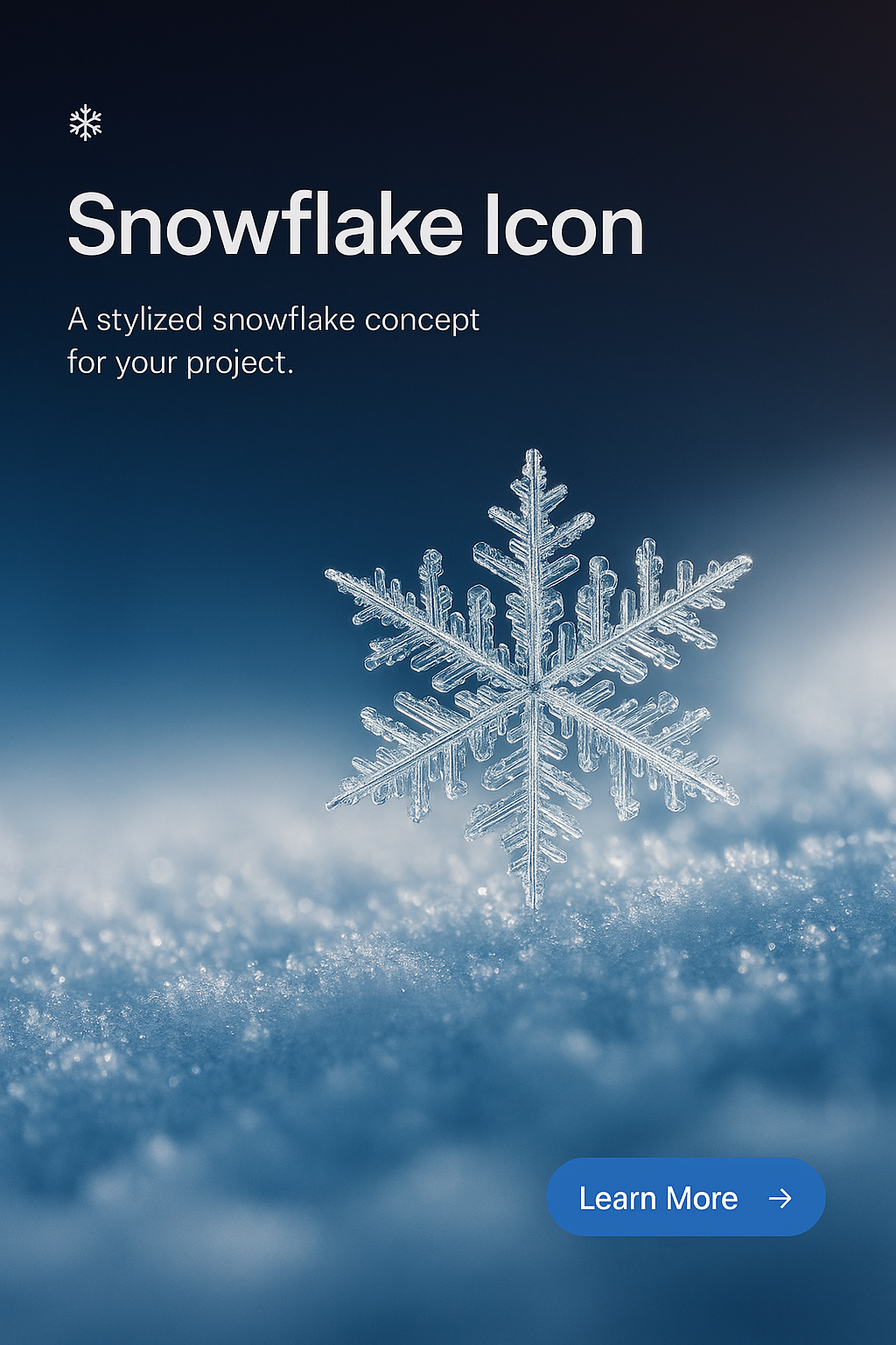 This image features a stylized snowflake icon set against a gradient background, emphasizing realism. The design includes a call-to-action button, enhancing user engagement.