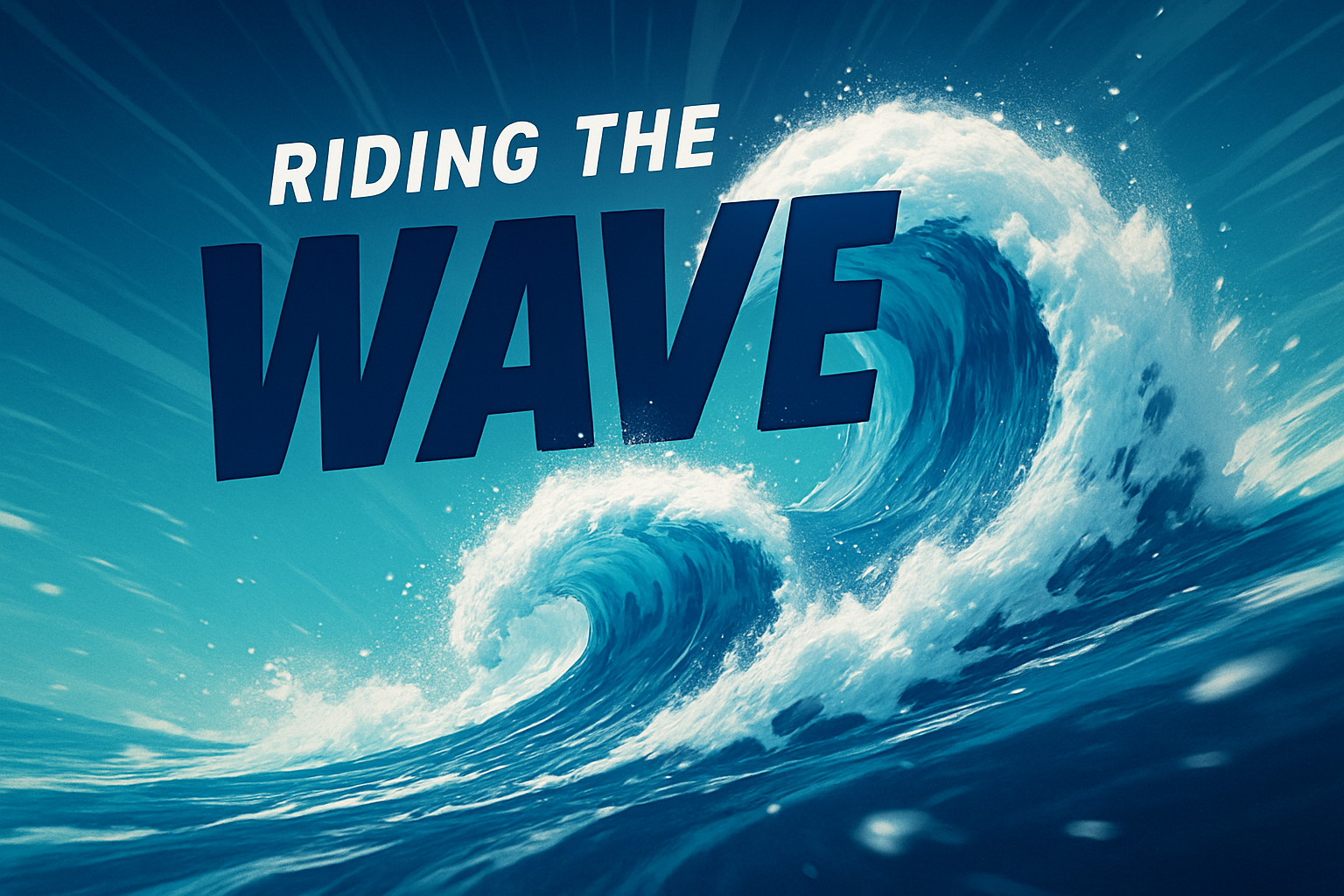 Dynamic Surfing Promotional Graphic Featuring a Surfer