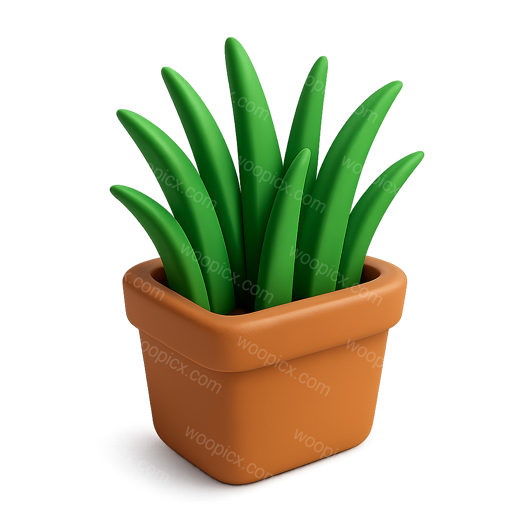 Collection: /by davooda/Type: PNG/Stylish 3D Icon of Potted Plant with Grass/A visually appealing 3D icon of a potted plant featuring vibrant green grass. The plant is presented in a three-quarter view with a smooth, isometric design and a transparent background.