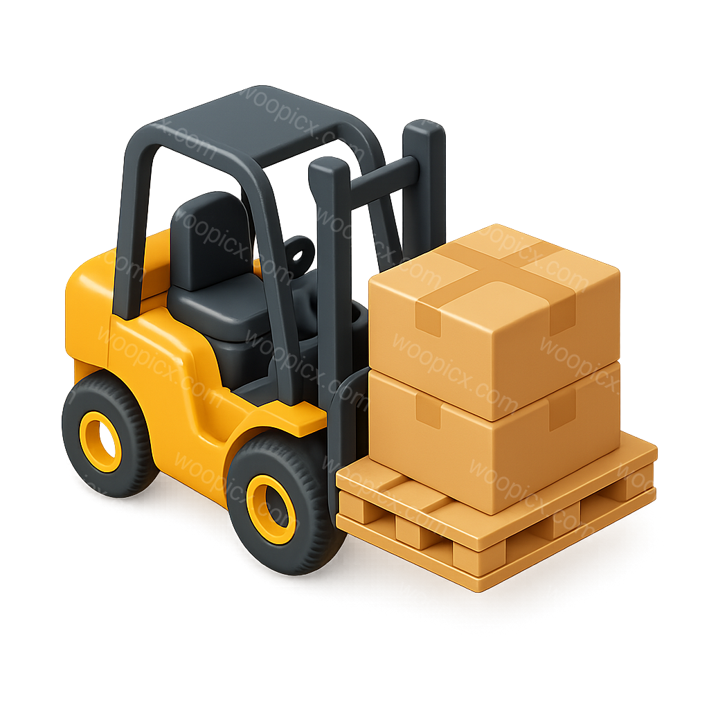 Stylized 3D Forklift Icon with Pallets in Motion