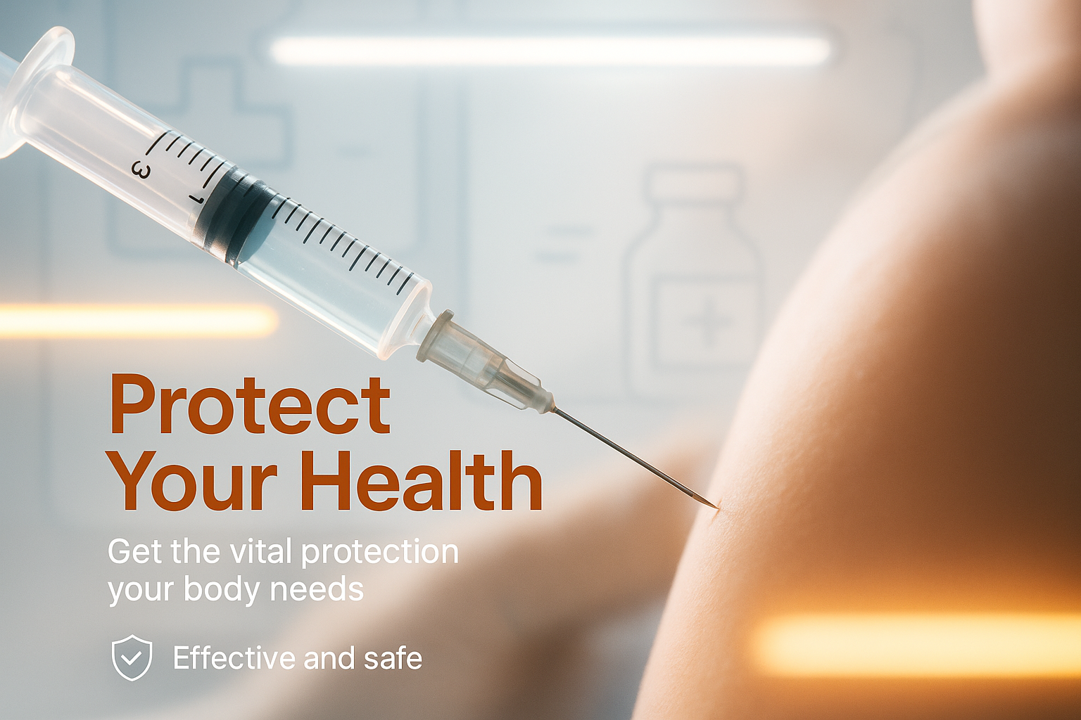 /Collection: /by davooda/Type: PNG/A compelling health promotion graphic showcasing a syringe poised above a patient's arm, emphasizing the importance of vaccinations. The modern design is suitable for healthcare marketing materials.