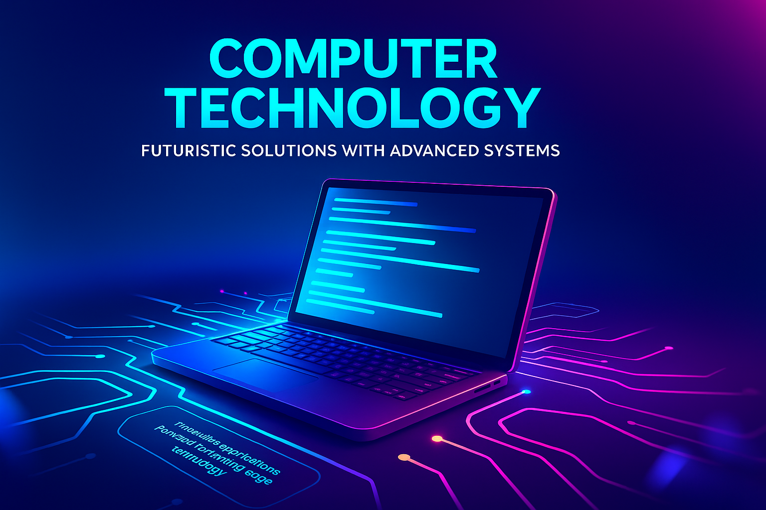Futuristic Laptop Illustration in Neon Colors for Tech Projects