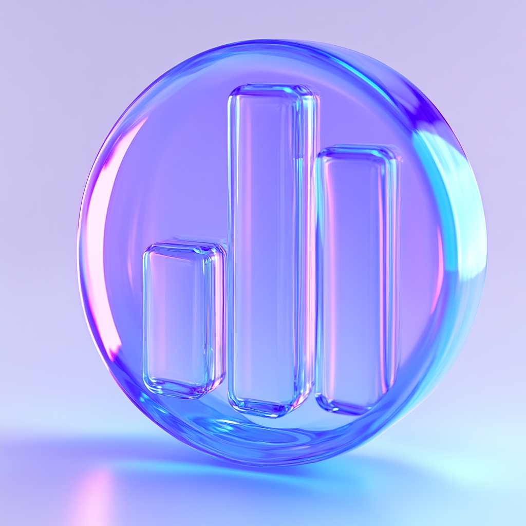 Stylized 3D Glass Chart Icon with Gradient Colors