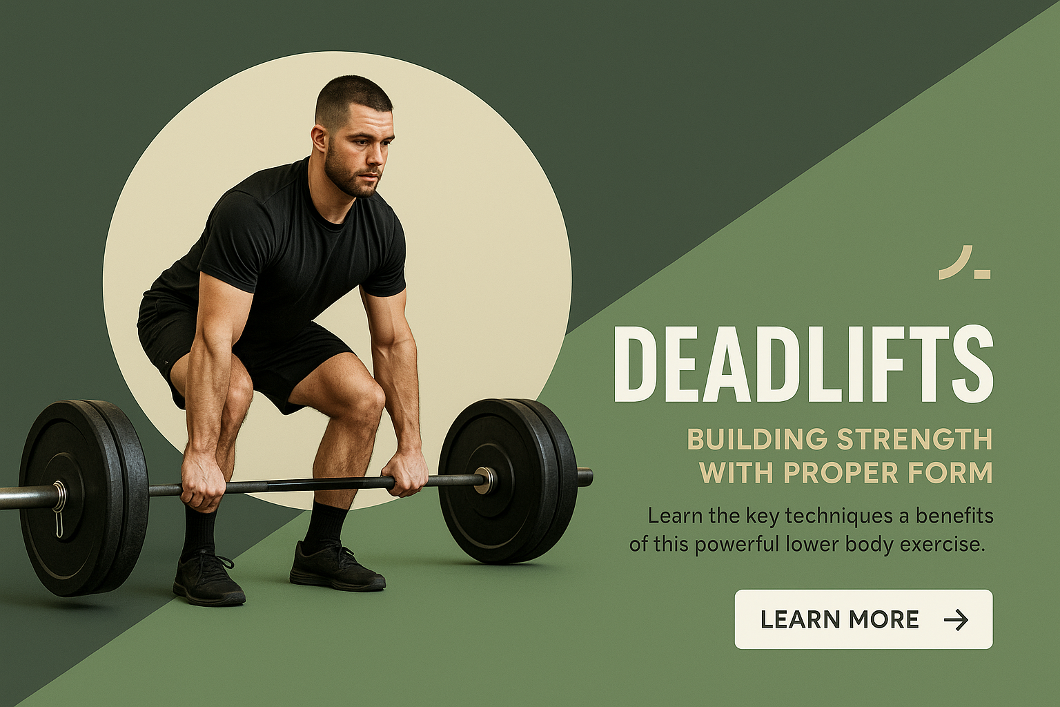 /Collection: /by davooda/Type: PNG/A visually appealing design featuring a person performing a deadlift. The layout includes geometric shapes, a balanced color scheme, and clear text elements emphasizing strength training.