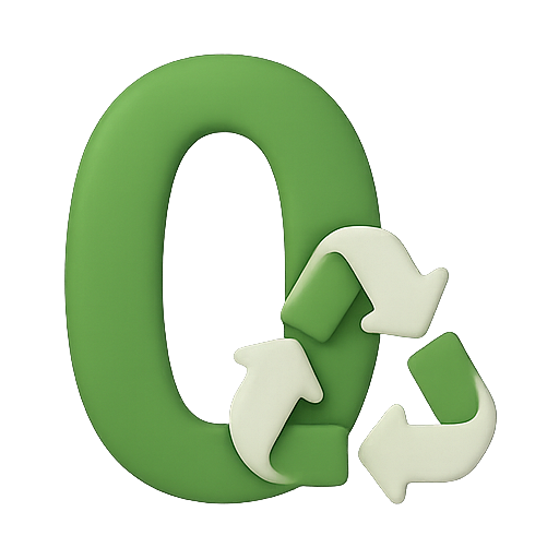 A stylized 3D letter O in green, accompanied by a white recycling symbol, representing sustainability and eco-friendliness. Ideal for environmental campaigns.