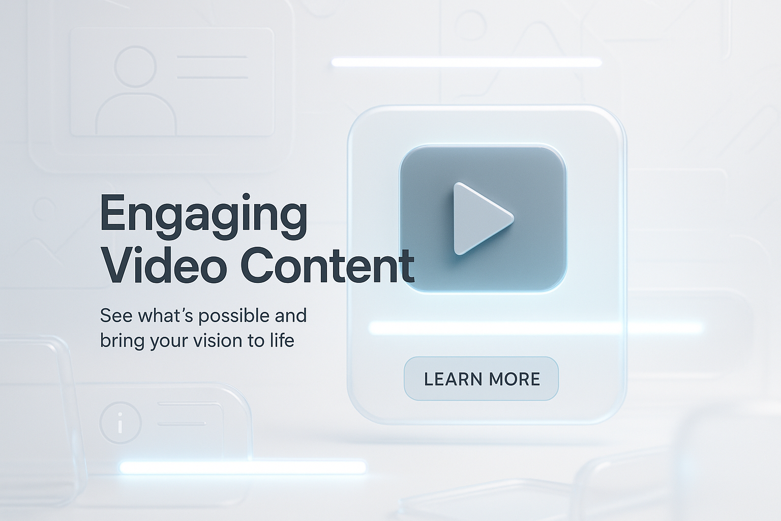 A modern promotional graphic showcasing a play button for video content. The design features a sleek, minimalistic style with a soft color palette, ideal for digital marketing campaigns.