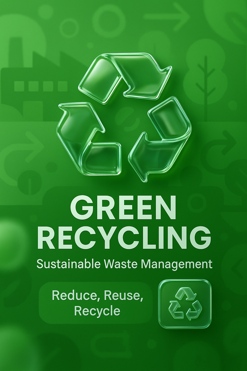A visually appealing graphic promoting recycling and sustainable waste management. The design features a green color palette and symbolic recycling icons, ideal for environmental campaigns.