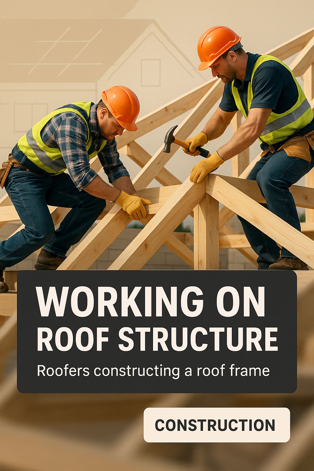 /Collection: /by davooda/Type: PNG/Dynamic image of roofers actively constructing a wooden frame, showcasing teamwork and craftsmanship in a construction setting, ideal for construction-related content.