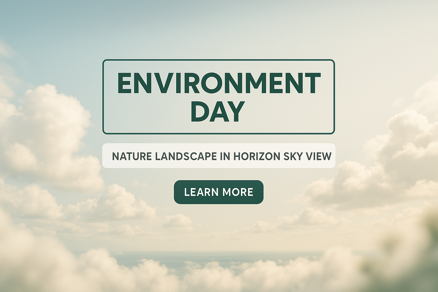 Informative graphic highlighting Environment Day with a serene nature landscape and soft cloud backdrop, ideal for awareness campaigns and social media posts.