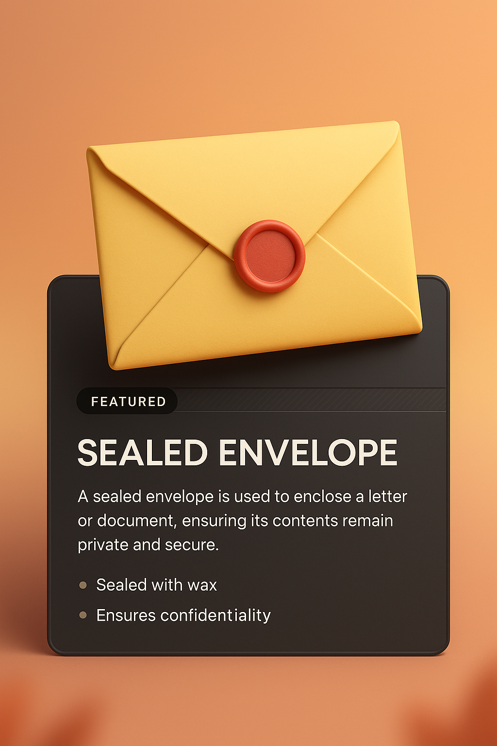A 3D illustration of a sealed envelope with a warm gradient background. The design features a dark panel that integrates seamlessly with the envelope, enhancing visual appeal.