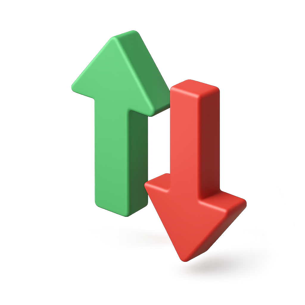 3D Currency Trends Icon with Upward and Downward Arrows