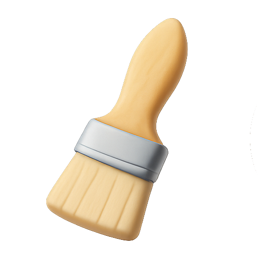 A detailed illustration of a paintbrush, showcasing a wooden handle and metallic ferrule, ideal for creative and artistic applications.