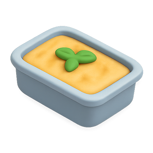 A visually appealing graphic of a seedling in a light blue rectangular container, designed with smooth edges and a soft color palette, ideal for gardening or nature-related themes.