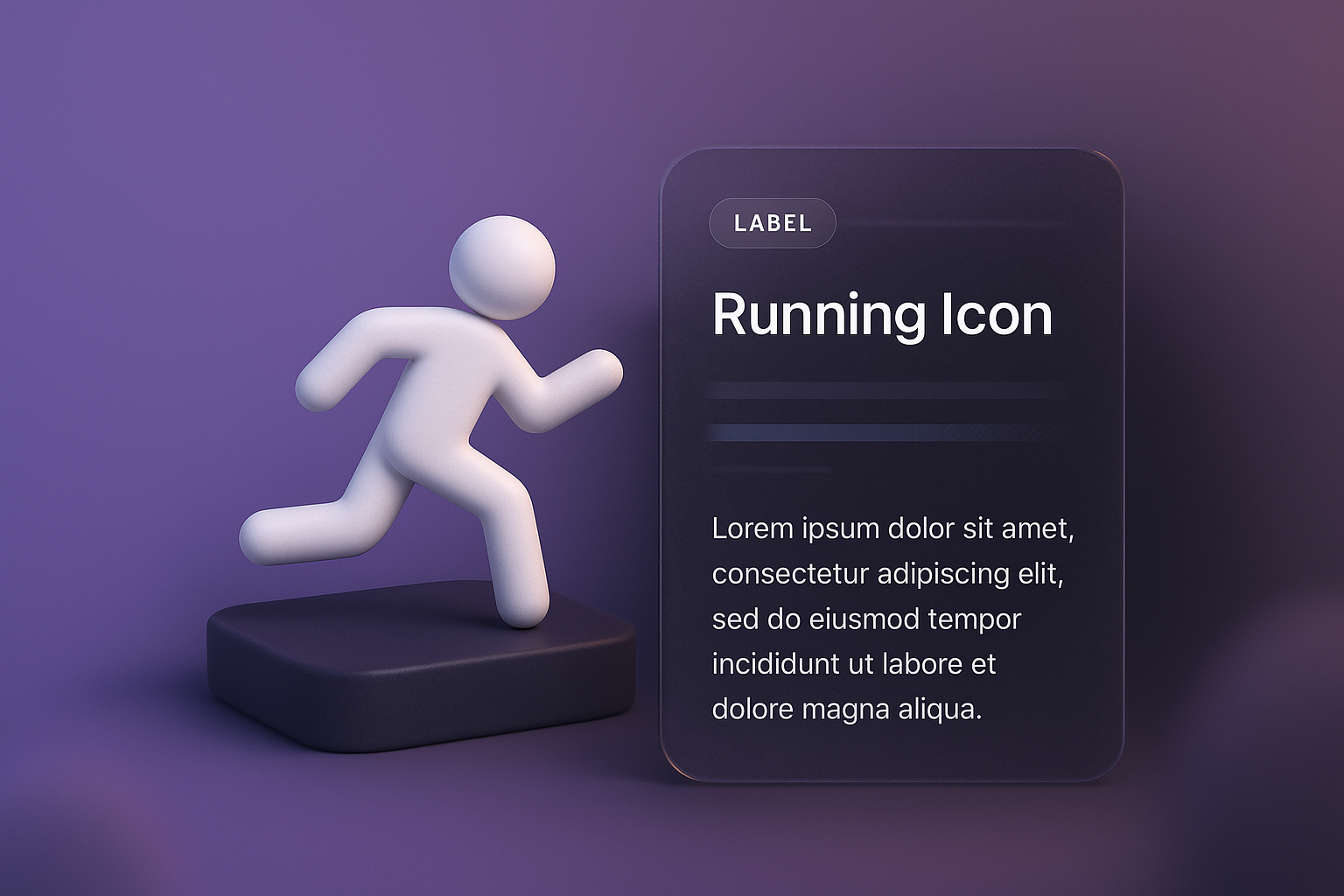 A minimalist 3D running icon set against a smooth gradient background. The design features a label and a text block, emphasizing a modern and cohesive style.