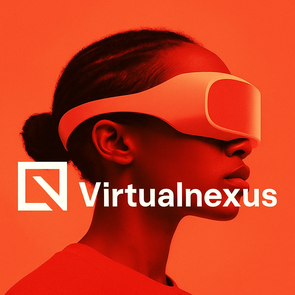 /Collection: /by davooda/Type: PNG/A striking image featuring a profile of a person wearing sleek virtual reality goggles against a vibrant red background. The bold branding 'Virtualnexus' enhances the futuristic theme.