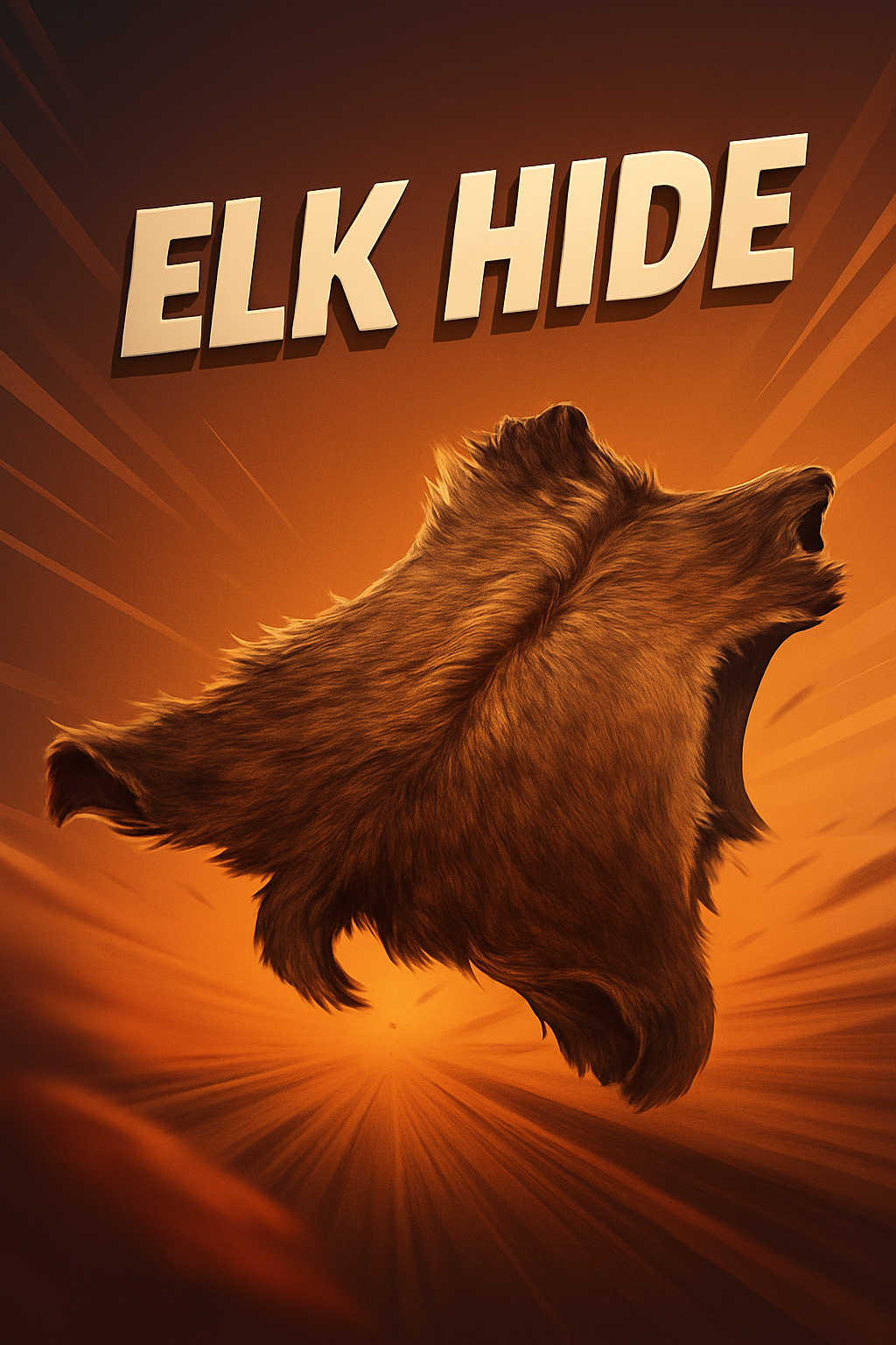 /Collection: /by davooda/Type: PNG/A striking 3D illustration of elk hide set against a gradient background. The design features dynamic lines radiating from the center and bold typography, enhancing the visual impact.