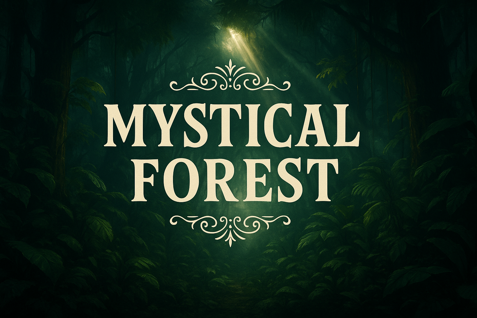 Mystical Fantasy Forest Scene with Enchanted Typography