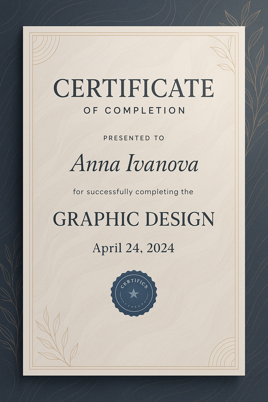 /Collection: /by davooda/Type: PNG/Stylish certificate featuring elegant typography and floral accents, ideal for educational institutions and online courses celebrating student achievements.