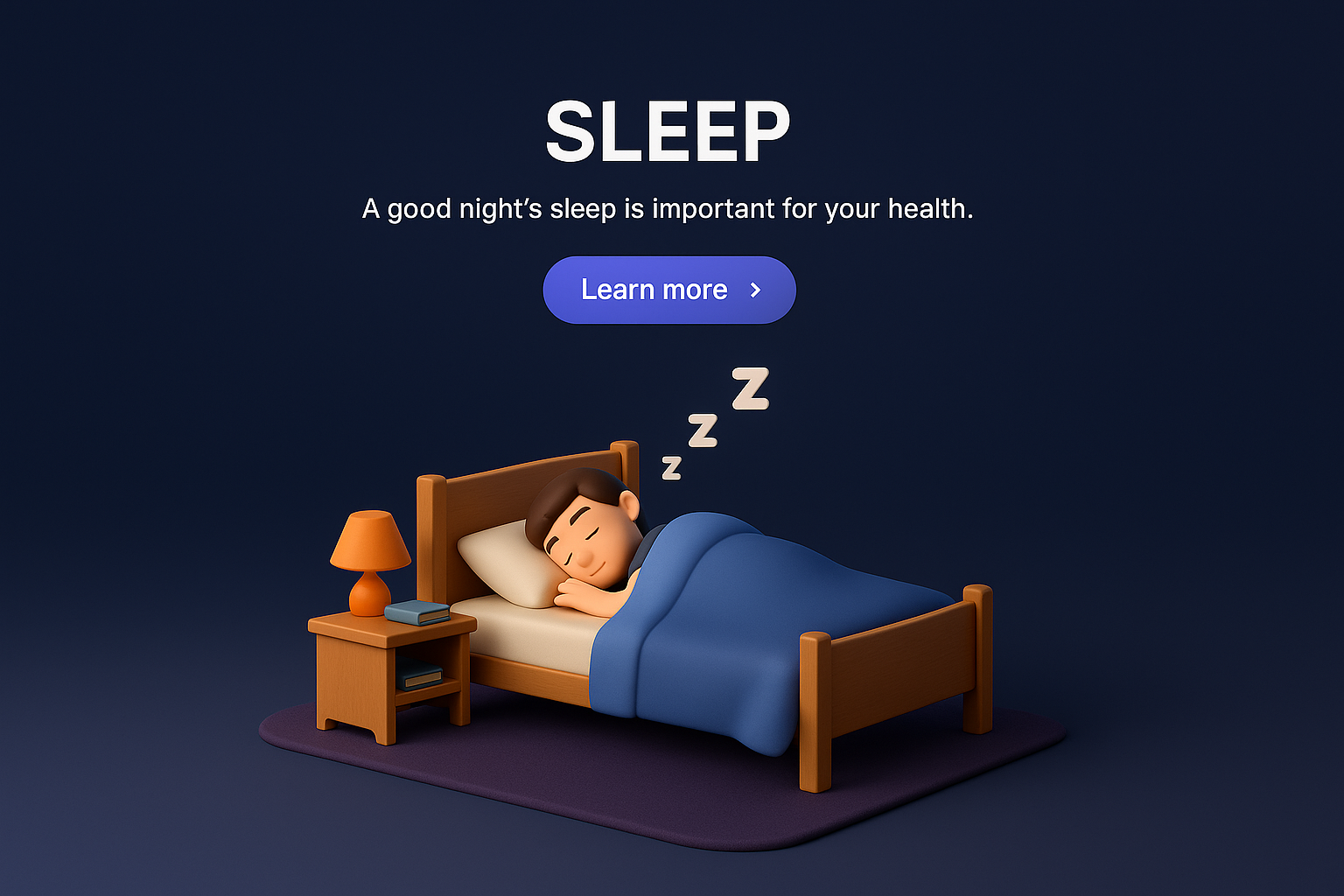 /Collection: /by davooda/Type: PNG/A detailed 3D illustration of a cozy bedroom featuring a bed, bedside table, and a sleeping figure, all set against a dark gradient background. The scene uses a realistic style with small text elements.