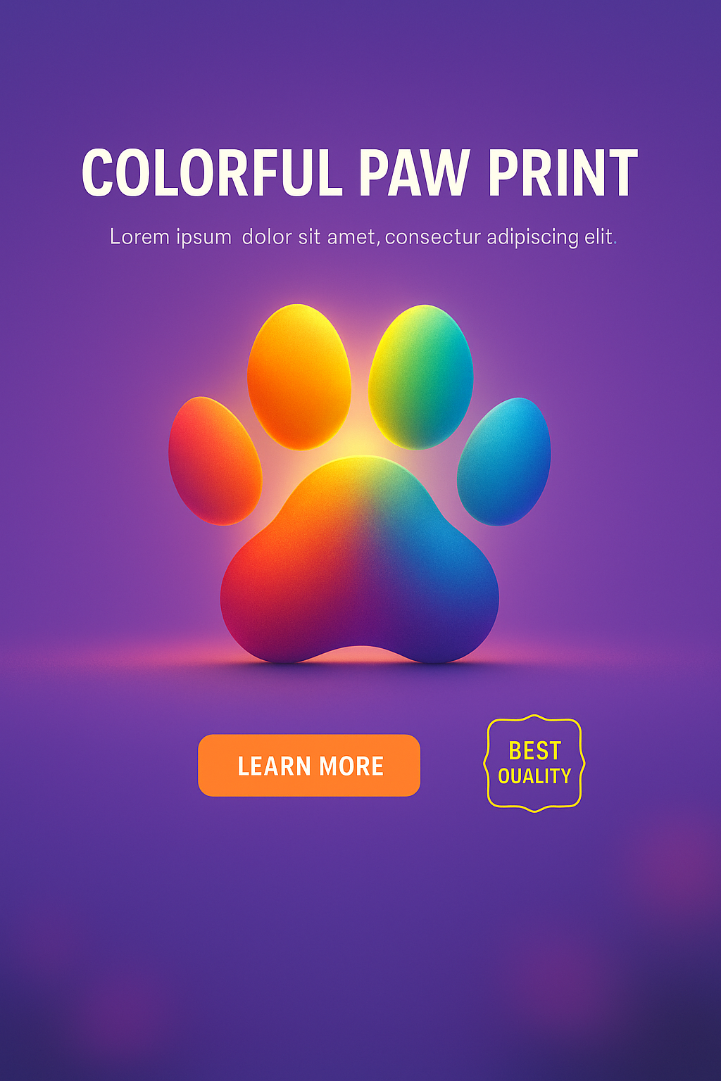 This image features a colorful paw print design on a gradient background, ideal for pet-related promotions or events. It has a modern and playful style.