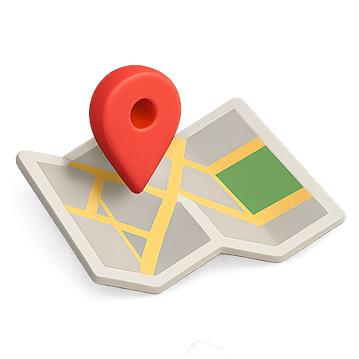 Stylized 3D illustration of a map with a prominent red location pin, ideal for navigation or location-based services. The design is modern and visually appealing, suitable for tech or travel-related content.
