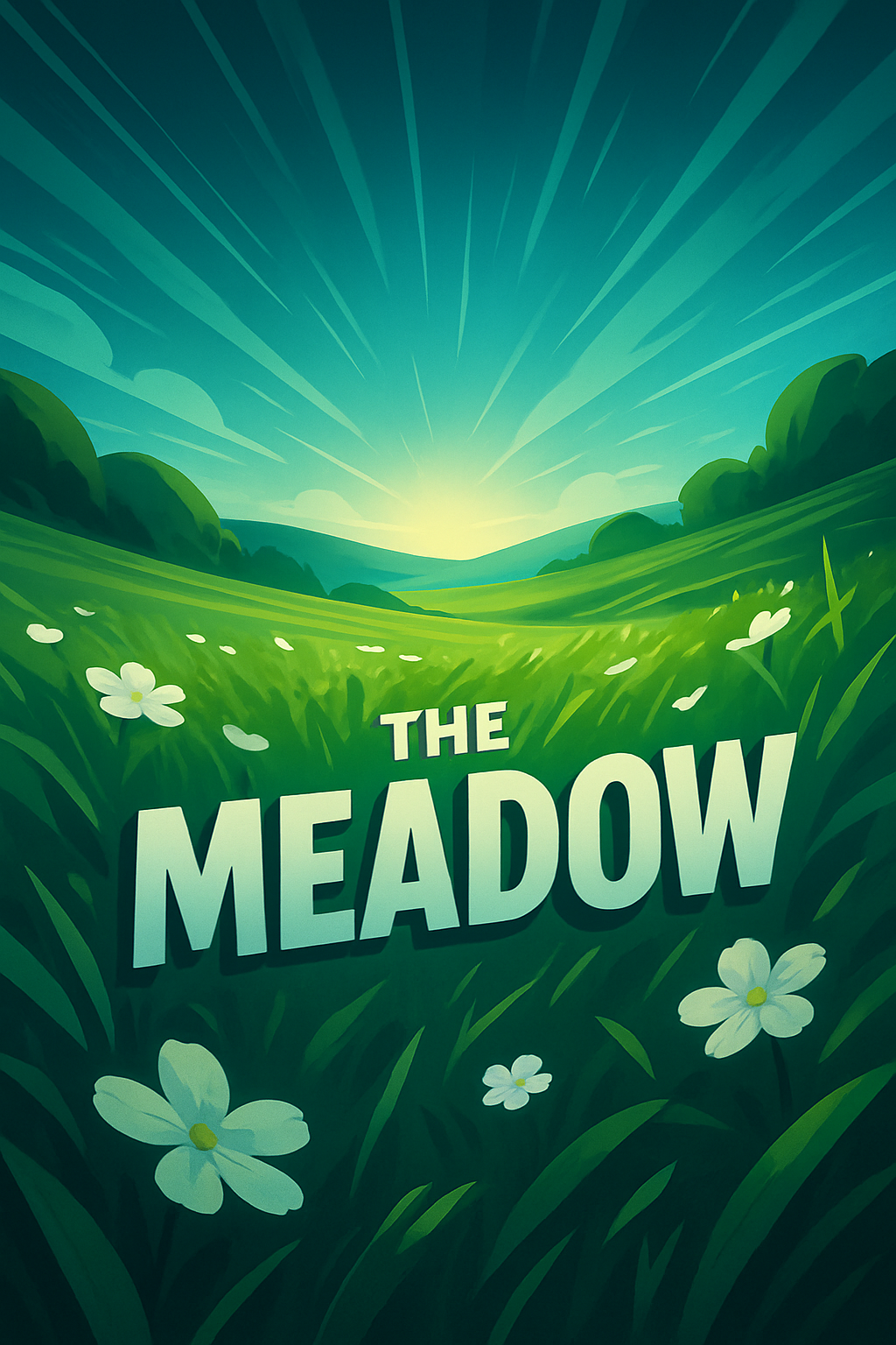 Vibrant Meadow Scene with Dynamic Elements and Text