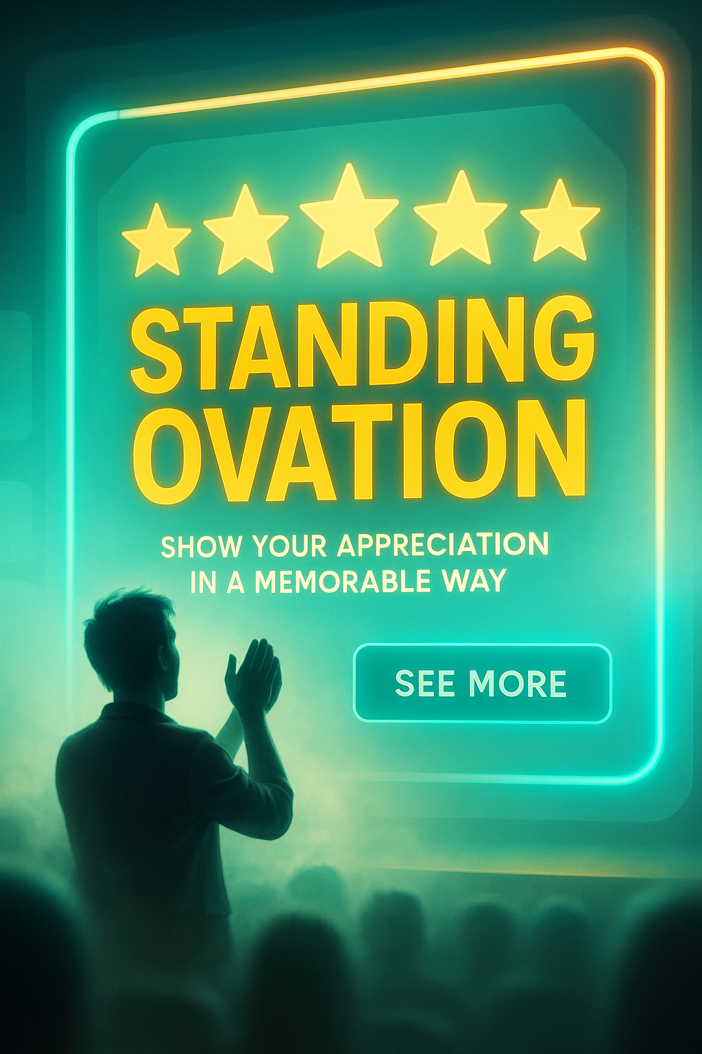 Vibrant promotional graphic featuring a silhouette of a person applauding, designed to evoke appreciation. Ideal for social media or website use.