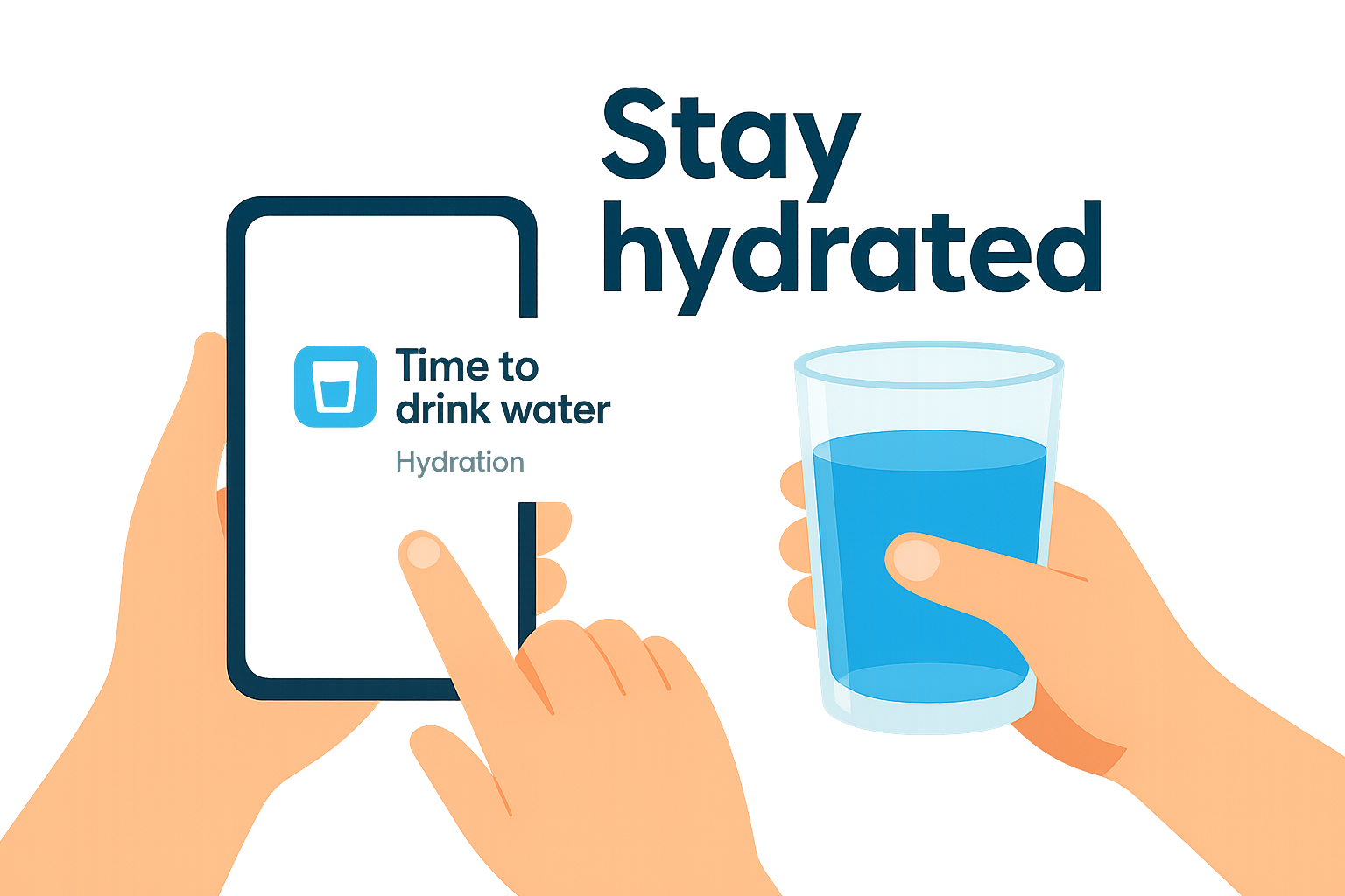 Illustration Encouraging Hydration with Mobile App and Water Glass