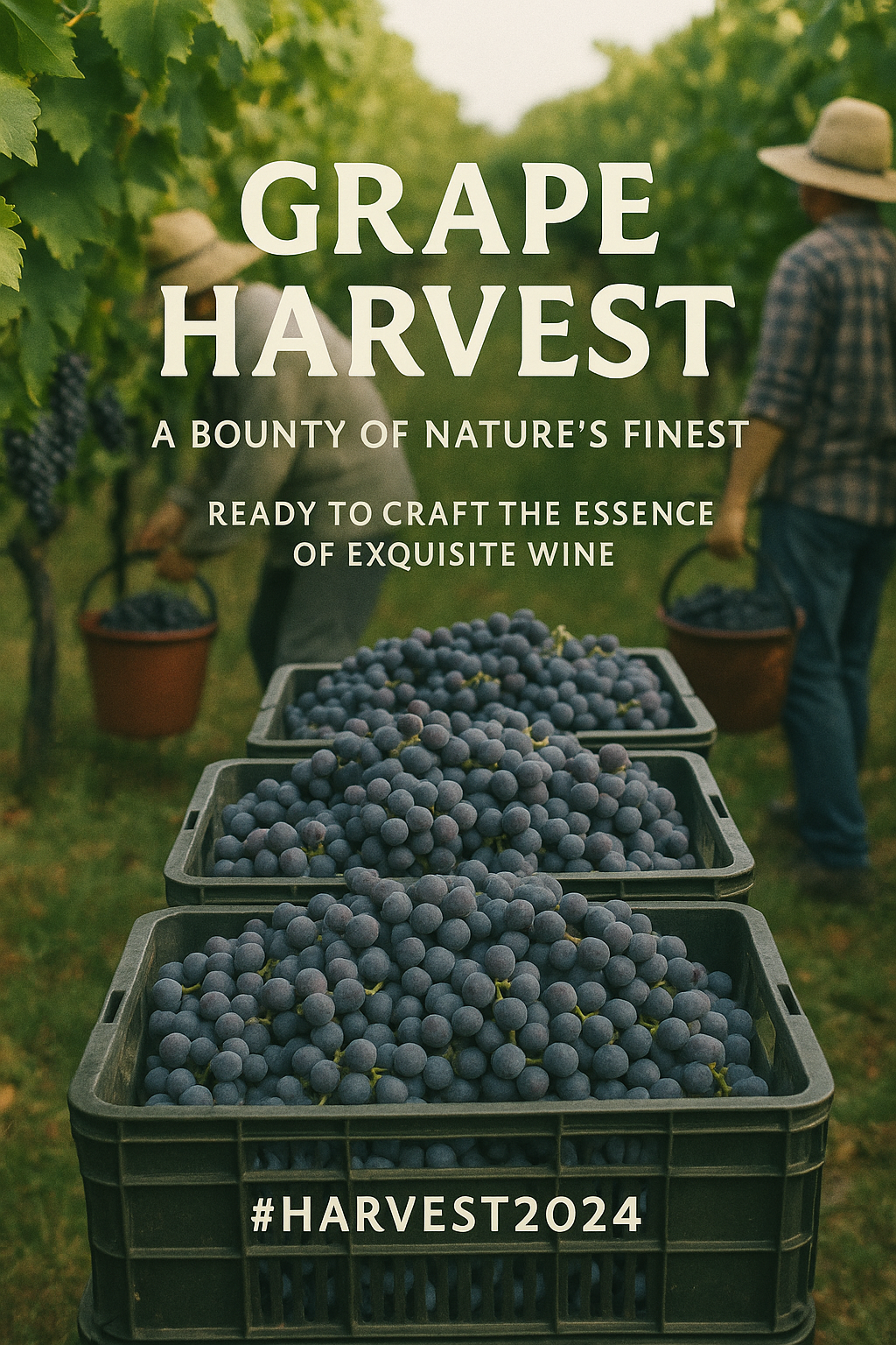 Grape Harvest Scene Capturing Vineyard Workers and Fresh Grapes