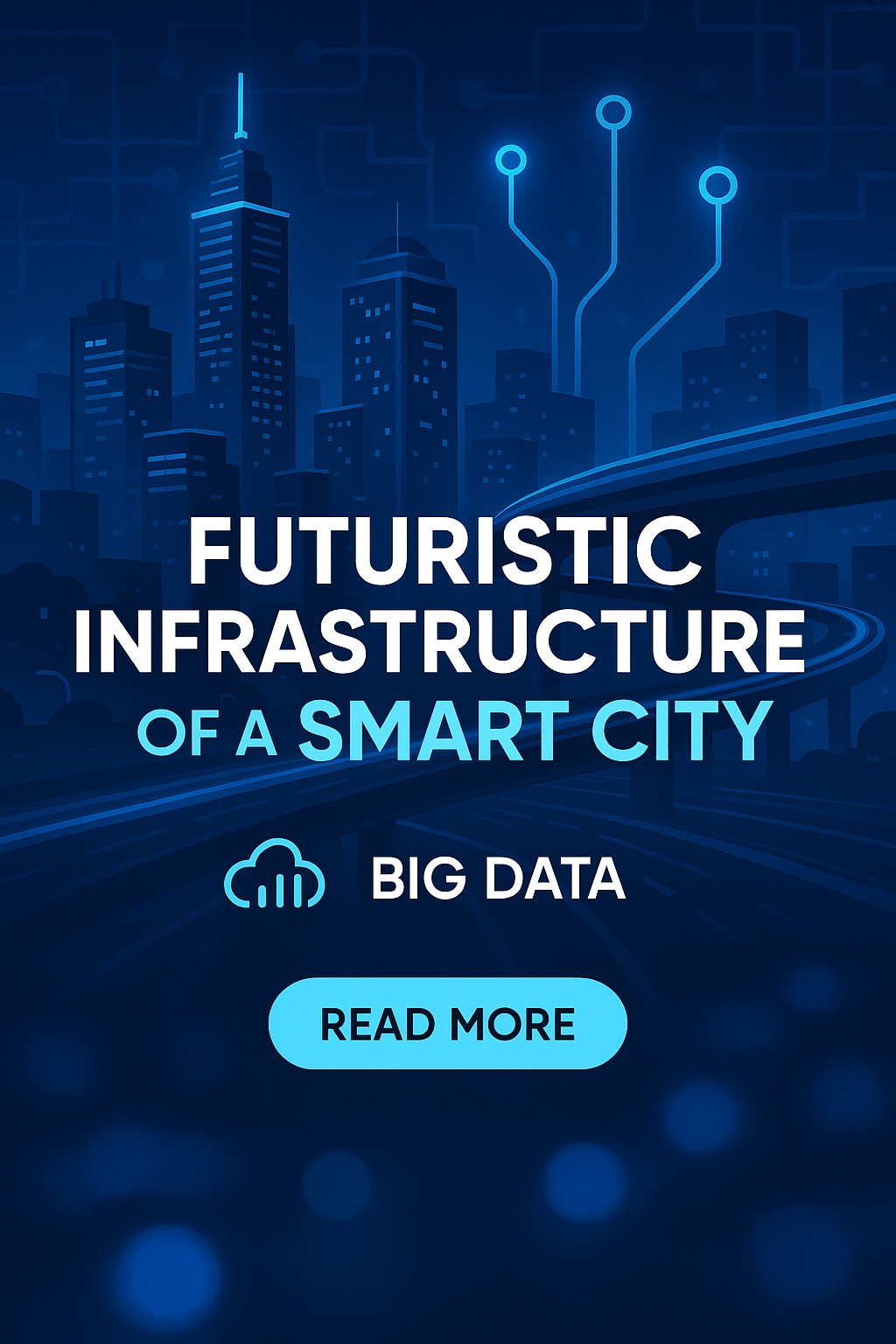 A visually striking graphic depicting the futuristic infrastructure of a smart city, utilizing modern design elements and a tech-inspired color palette. Ideal for digital marketing or technology-related content.