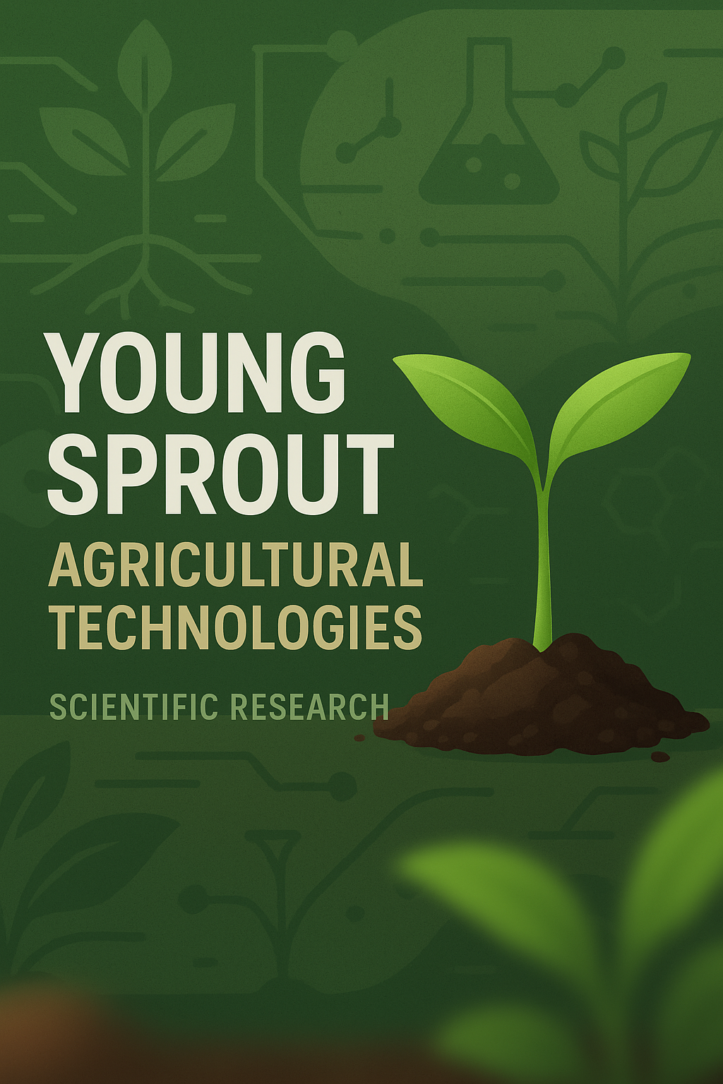 Stylized graphic representing agricultural technologies, featuring a young plant sprout. Ideal for scientific research presentations or educational materials.