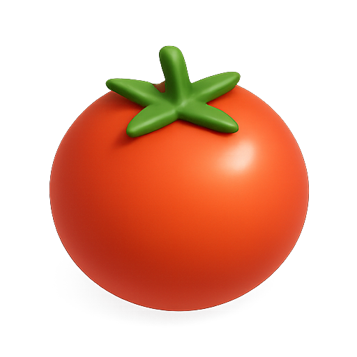 A vibrant 3D illustration of a tomato featuring a smooth surface and a bright red color, suitable for food-related graphics, educational content, or culinary marketing.