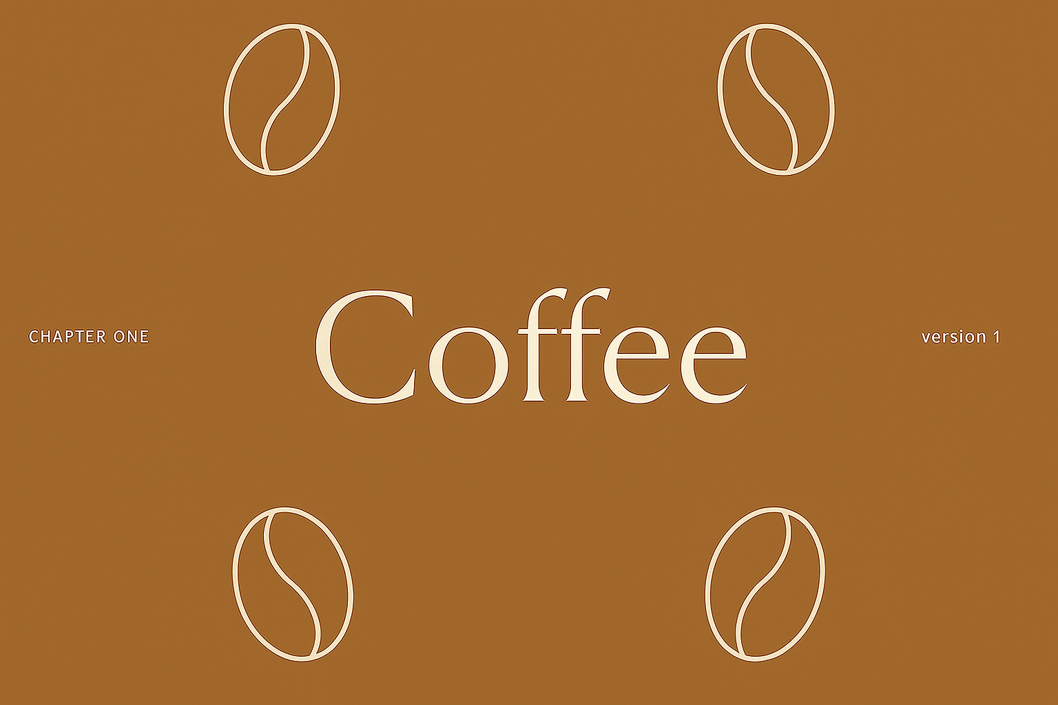 /Collection: /by davooda/Type: PNG/A visually appealing coffee-themed portfolio layout featuring a warm brown background, elegant typography, and coffee bean illustrations, perfect for showcasing coffee-related content.