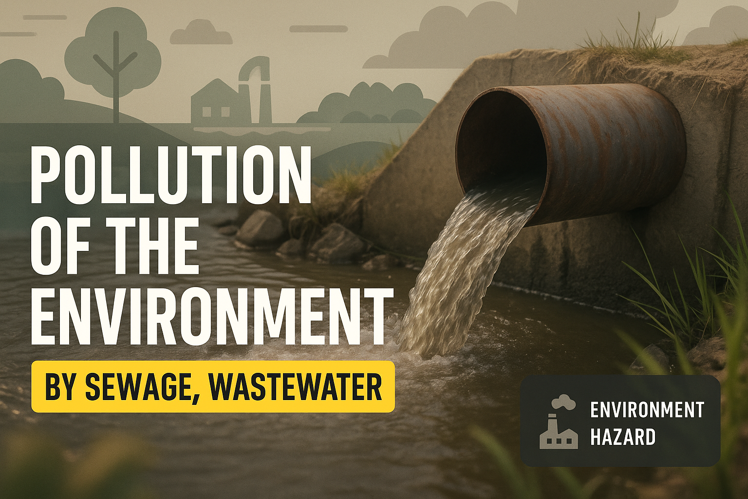 Illustrative graphic emphasizing environmental pollution caused by sewage and wastewater, suitable for educational campaigns or environmental advocacy.